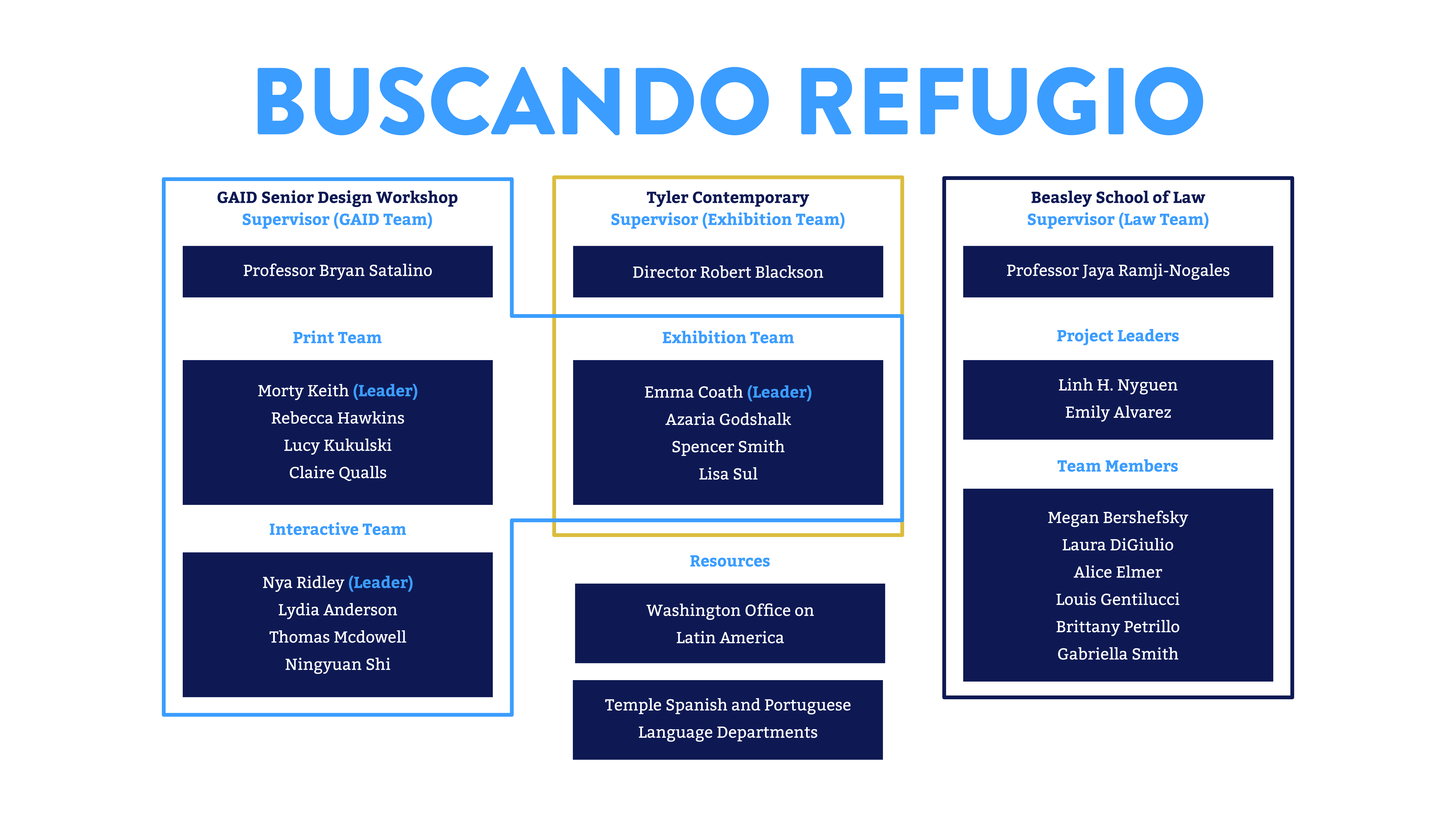 In the fall of 2019, I had the privilege of working alongside the Temple University’s Beasley School of Law, Tyler School of Art and Architecture’s Senior Design Workshop, Spanish and Portuguese Language departments, and the Washington Office on Latin America (WOLA) to realize Buscando Refugio, a large scale effort to connect refugees seeking asylum in the United States’ southern border to documents that would help their effort to make a safer life in America. The goal of the project was to prepare and deliver pro se (self-representative/without legal counsel) materials to asylum seekers so that they could represent themselves efficiently in their asylum hearings.